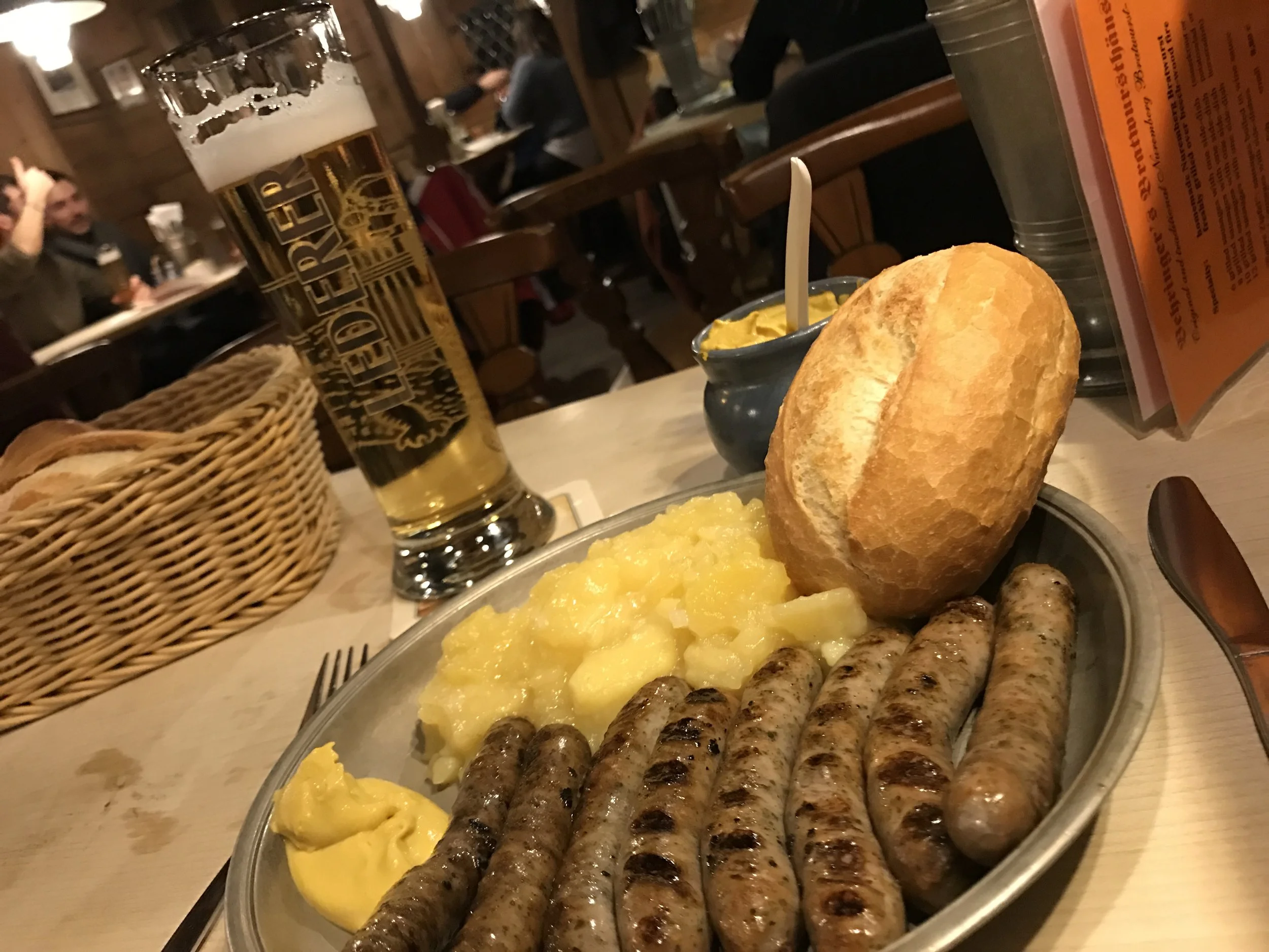 Nuremberg is famed for two main parts of its culinary experience – sausages and red beer. To most, that would sound tasty, but to Nuremberg they are part of its identity. Mini bangers called Nurnberger bratwursts are served up with bread, potato salad and sauerkraut, and are best eaten at Bratwursthäusle. Bratwursthäusle, which dates back to 1313 and is Nuremberg’s oldest restaurant, is credited with the invention of the grilled Nuremberg Bratwurst, which gained Protected Geographical Indication from the European Union in 2003 as Europe’s first sausage. This restaurant was my favourite because it was simple, traditional, atmospheric and not to be missed.